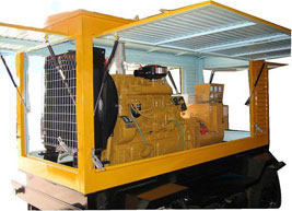蒙山柴油发电机组/移动柴油发电机组设计独具创新,机动性高、重心低、制动安全、制造精良、外形美观。 蒙山拖车车架采用槽梁焊接成框架结构,节点选择合理、强度高、刚性好;同时装有钢板弹簧悬架结构;拖车采用高度可调节插销式牵引架,适用于各种高度牵引车;采用圆形钢管焊接直通式车轴,结构紧凑,安全可靠;车架四角设有机械式支撑装置,配备惯性行车制动、驻车制动和脱离应急制动,确保机组在各种状况下的安全;车架前端设有支撑轮,具备承受机组垂直载荷的功能的同时还具备导向功能;整车配备转向和刹车指示灯,同时装有尾灯标准插头
